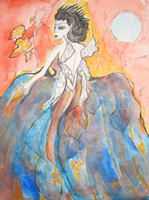 QUEEN MAB (watercolor on paper), WILD THINGS (acrylic on canvas), CONTEMPLATION (acrylic on canvas)
