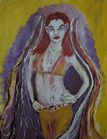 ISIS AND THE RAVEN (acrylic on canvas sheet), VAMPIRE IN YELLOW (acrylic on canvas) & GODDESS OF THE DARK SUN (acrylic on canvas)